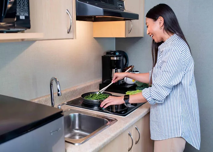The Royal Kelowna - Bellstar Hotels & Resorts is a short walk from the beach and offers plush accommodations with complete kitchen capabilities to make guests feel at home. Each room features a dining area and balcony with scenic views of Okanagan Lake. Amenities include a rooftop infinity pool and fitness center, enhancing guests' leisure options. Nearby attractions are abundant, allowing quick access to outdoor adventures and shopping. The hotel also provides BBQ facilities for enjoying summer evenings.